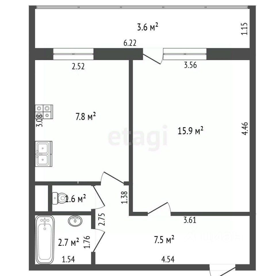 Объект расположен на 4 этаже девятиэтажного панельного дома. Планировка практичная: изолированная комната площадью 16 кв.м., кухня 7,8 кв.м. и просторная застекленная лоджия с деревянными окнами, что увеличивает полезное пространство.