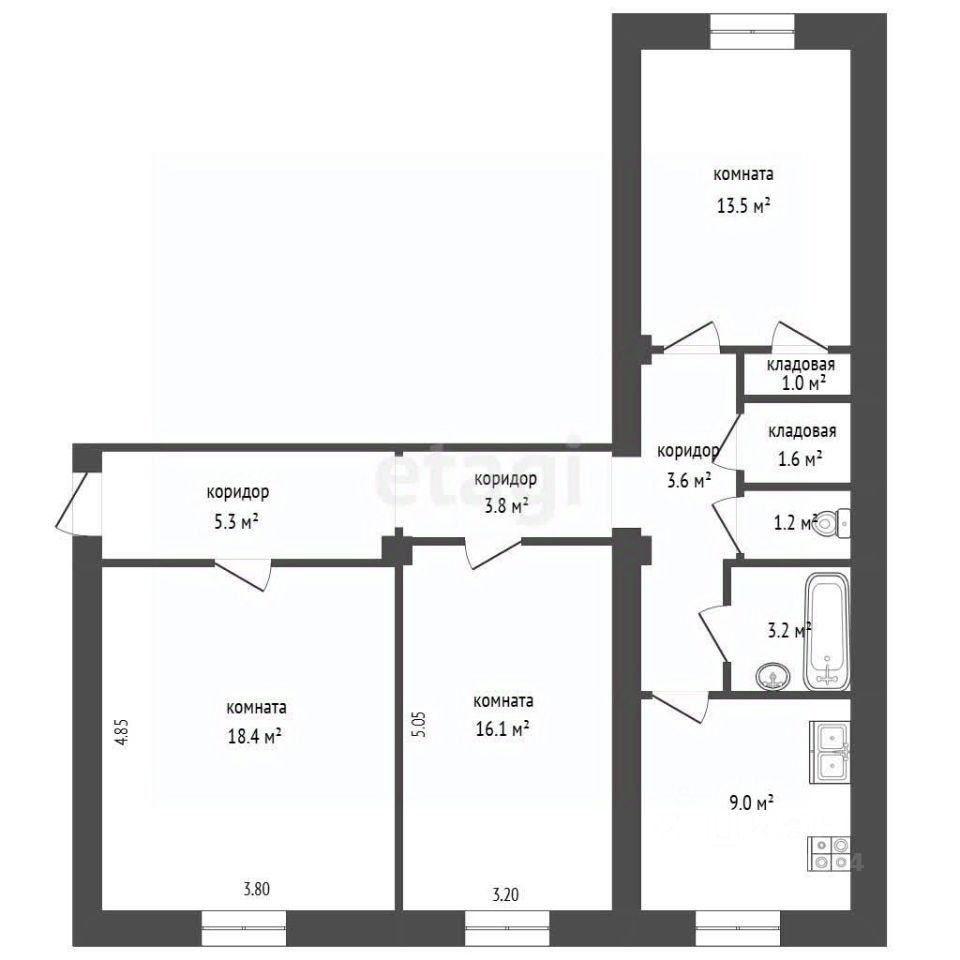 Дополнительное пространство: Есть отдельная кладовая (или гардеробная), которая поможет вам организовать хранение вещей.