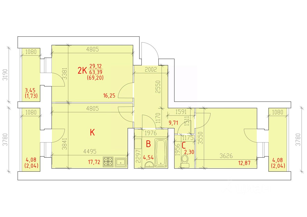 Продаётся 2-комнатная квартира в строящемся доме (Дом 23 - 2 этап), срок сдачи: IV-кв. 2026, общей площадью 69.2 кв.м., на 9 этаже.