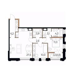 Площадь кухни27,5 м²