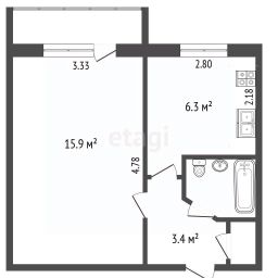 Планировка классическая, с изолированной комнатой, что создает комфортное личное пространство.