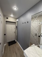 Ламинат 33 класс с фаской, немецкие каталожные обои, качественные натяжные потолки, керамогранит в санузле.