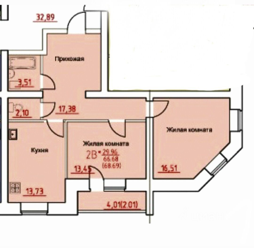 В продаже просторная 2 к квартира в новом доме
