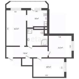 3-комнатная квартира в центре города площадью 65 м² на 6 этаже 16-этажного дома.