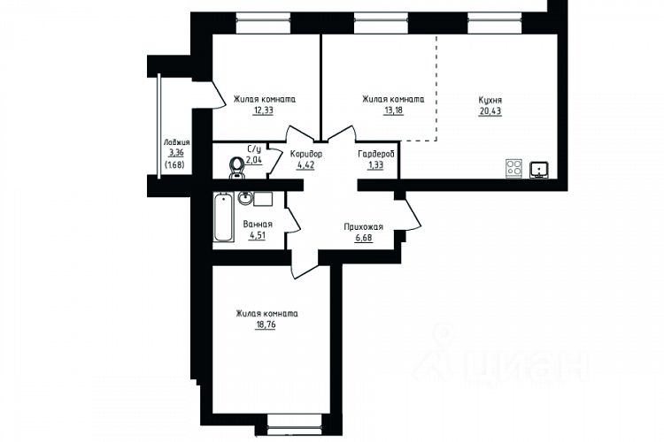 Продаётся 3-комнатная квартира в сданном доме (Дом 2б), срок сдачи: II-кв. 2025, общей площадью 87.04 кв.м., на 9 этаже. Расположение