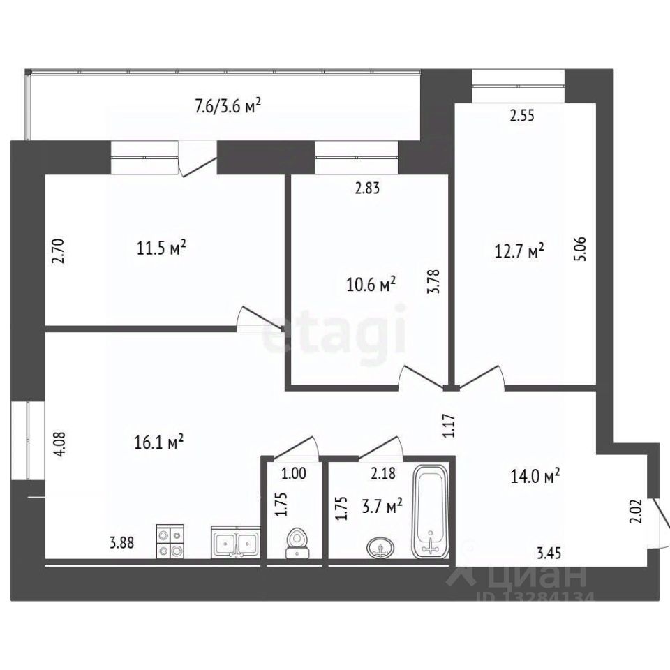 Площадь кухни16,1 м²
