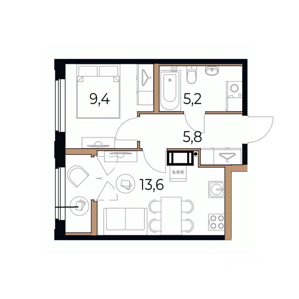 Общая площадь35,4 м²