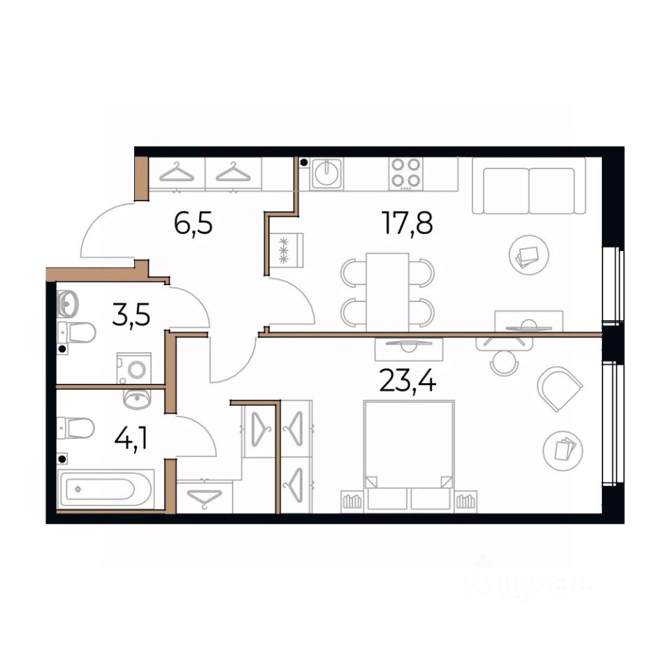 Общая площадь55,3 м²