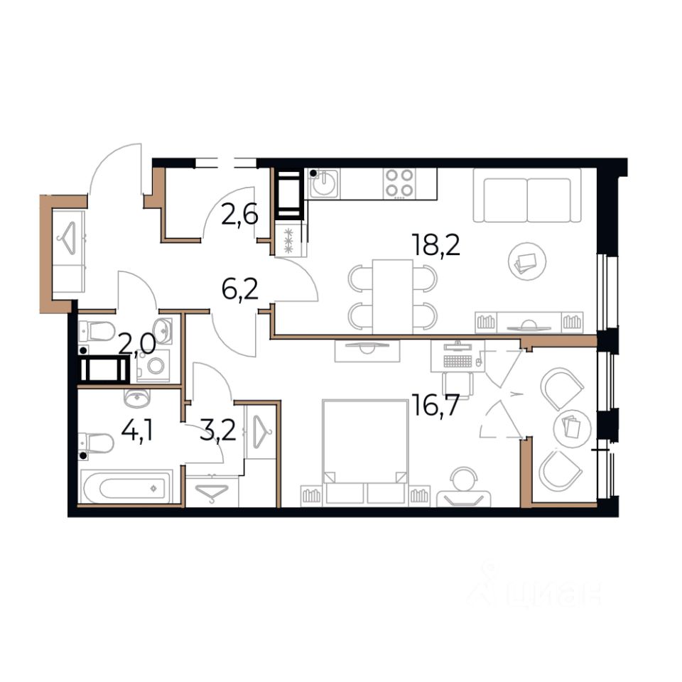 Общая площадь54,8 м²