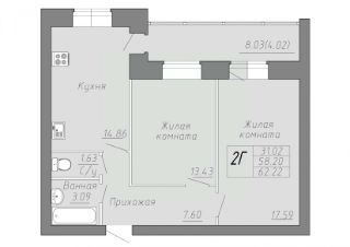 Общая площадь62,22 м²