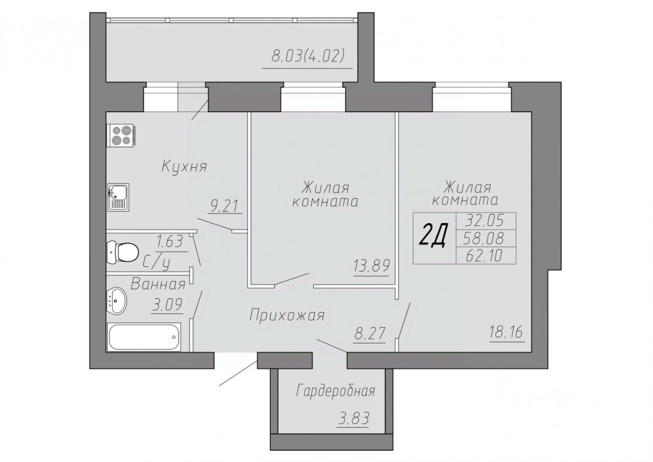Общая площадь62,1 м²