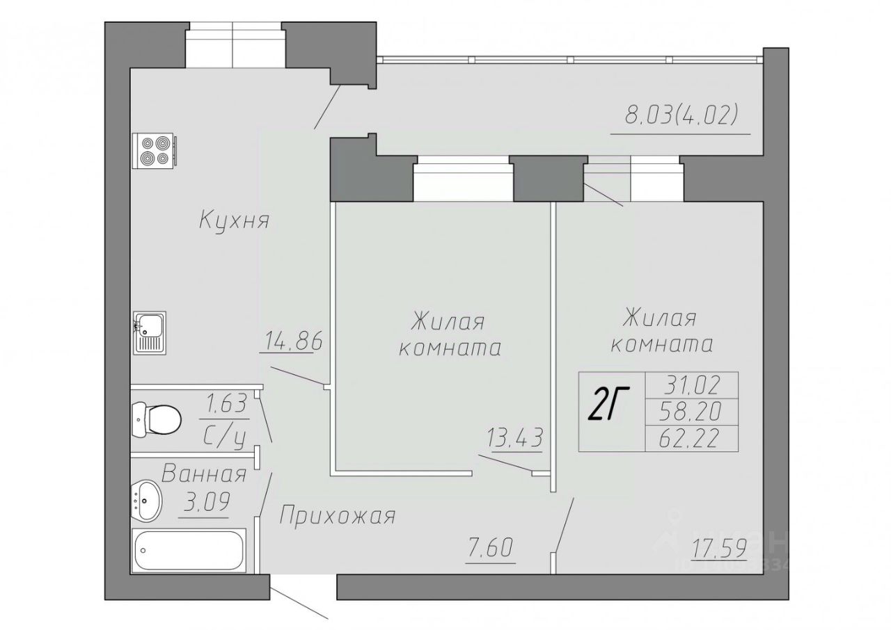 Площадь кухни14,9 м²