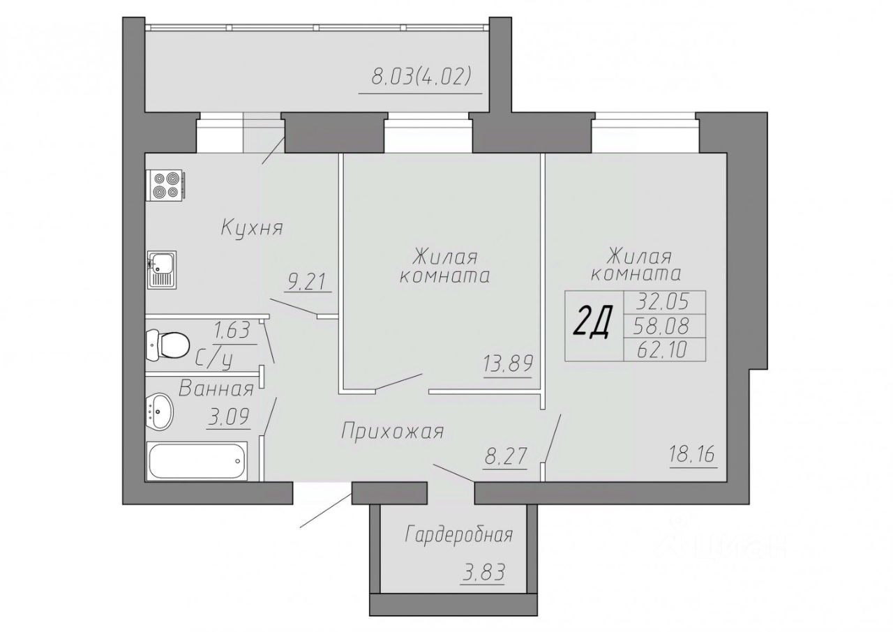 Общая площадь60,02 м²