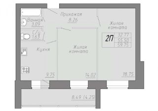 Общая площадь59,75 м²