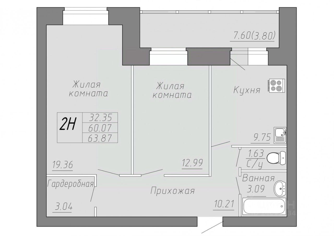 Общая площадь63,87 м²