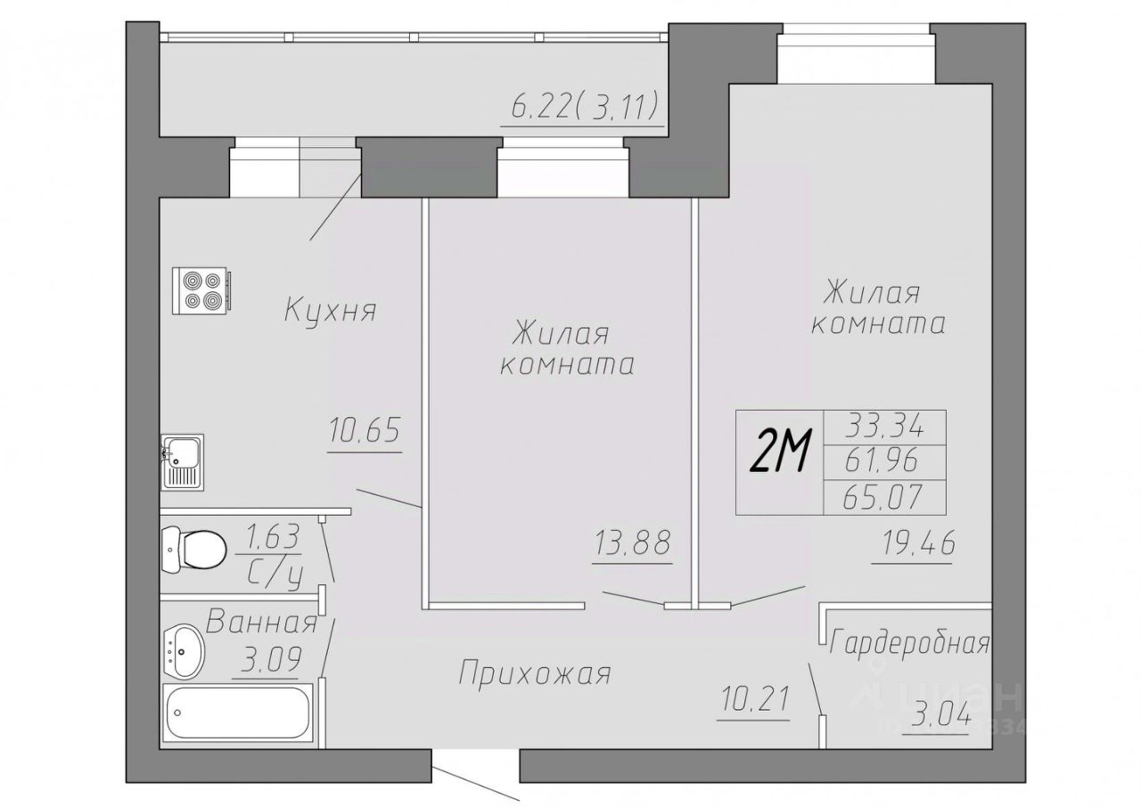 Общая площадь65,07 м²