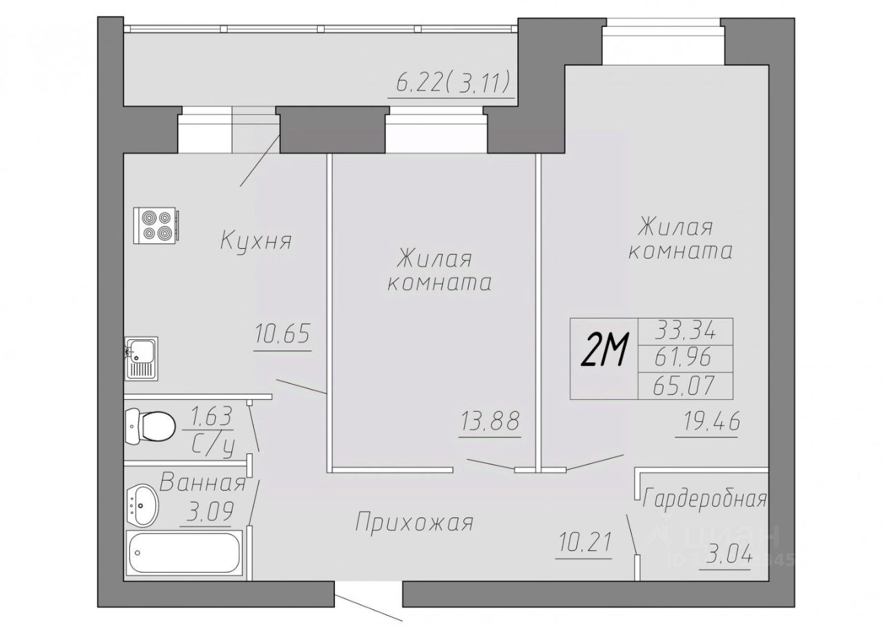 Общая площадь65,07 м²