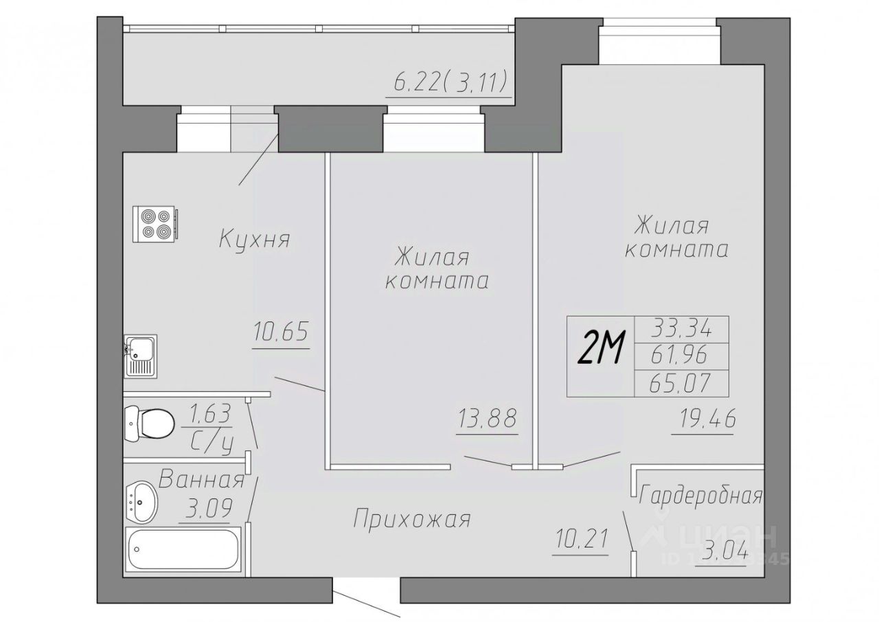 Общая площадь65,07 м²