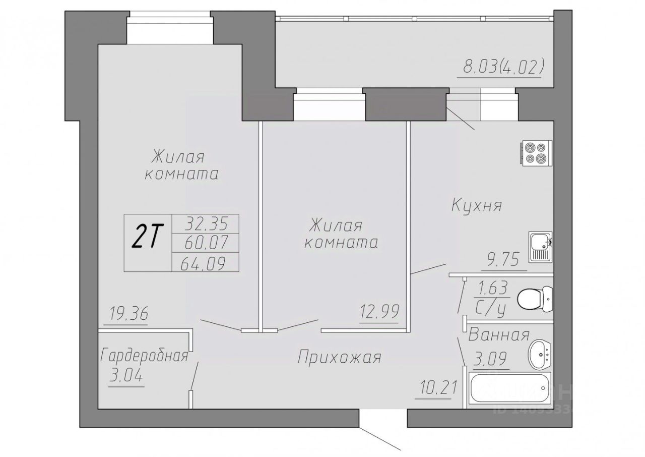 Общая площадь64,09 м²