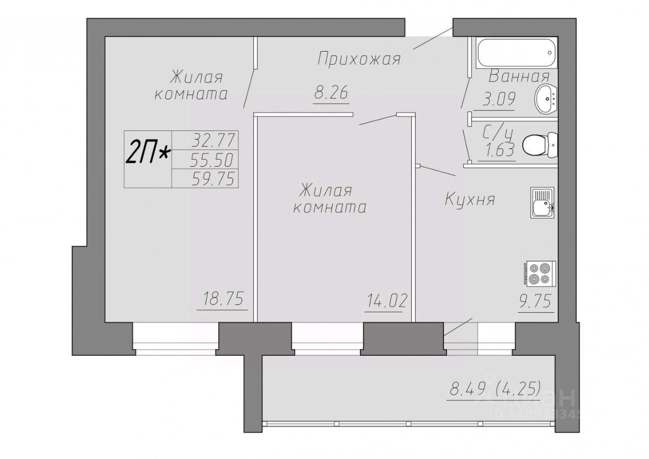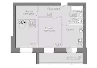 Общая площадь59,75 м²