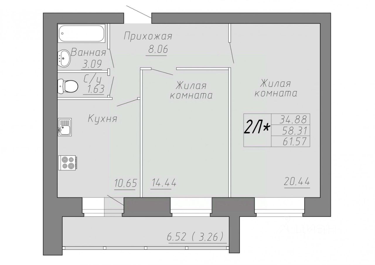Общая площадь61,57 м²