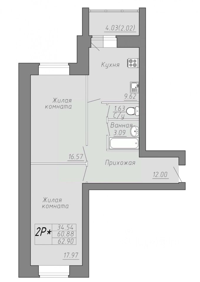 Общая площадь62,9 м²