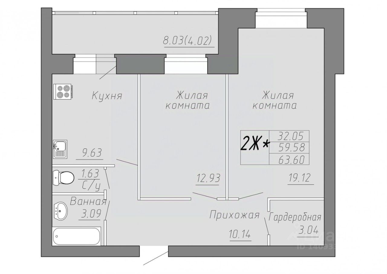 Общая площадь63,87 м²
