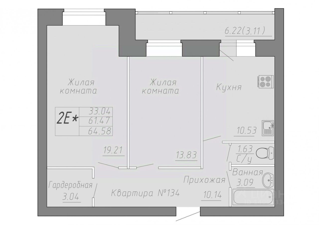 Общая площадь65,07 м²