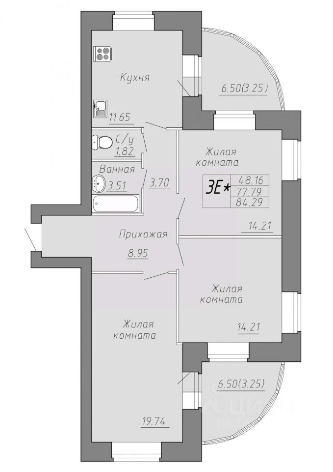 Общая площадь84,29 м²