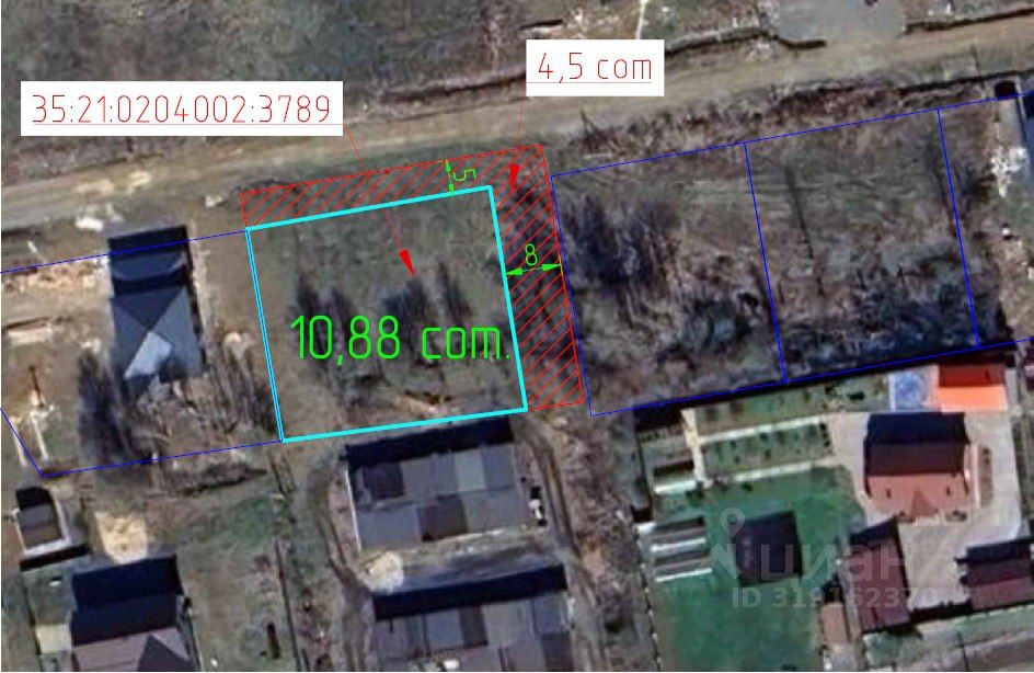 Больше соседних в среднем на 2 сотки + 4,5 сотки промежутка между нашим и соседним участком и до дороги, где можно парковать автомобили гостей или присоединить к своему (см. первый слайд)