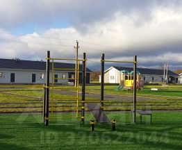 * Футбольное поле, волейбольная площадка, теннисный корт и воркаут-зона.