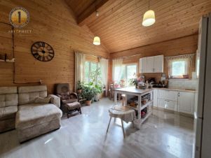 • Коммуникации: электричество 15 кВт, вода скважина 70м и колодец с насосной станцией, канализация септик, отопление печное + батареи от печи, теплые полы в ванной и коридоре.