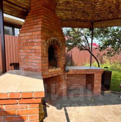 Беседка и печь с мангалом.