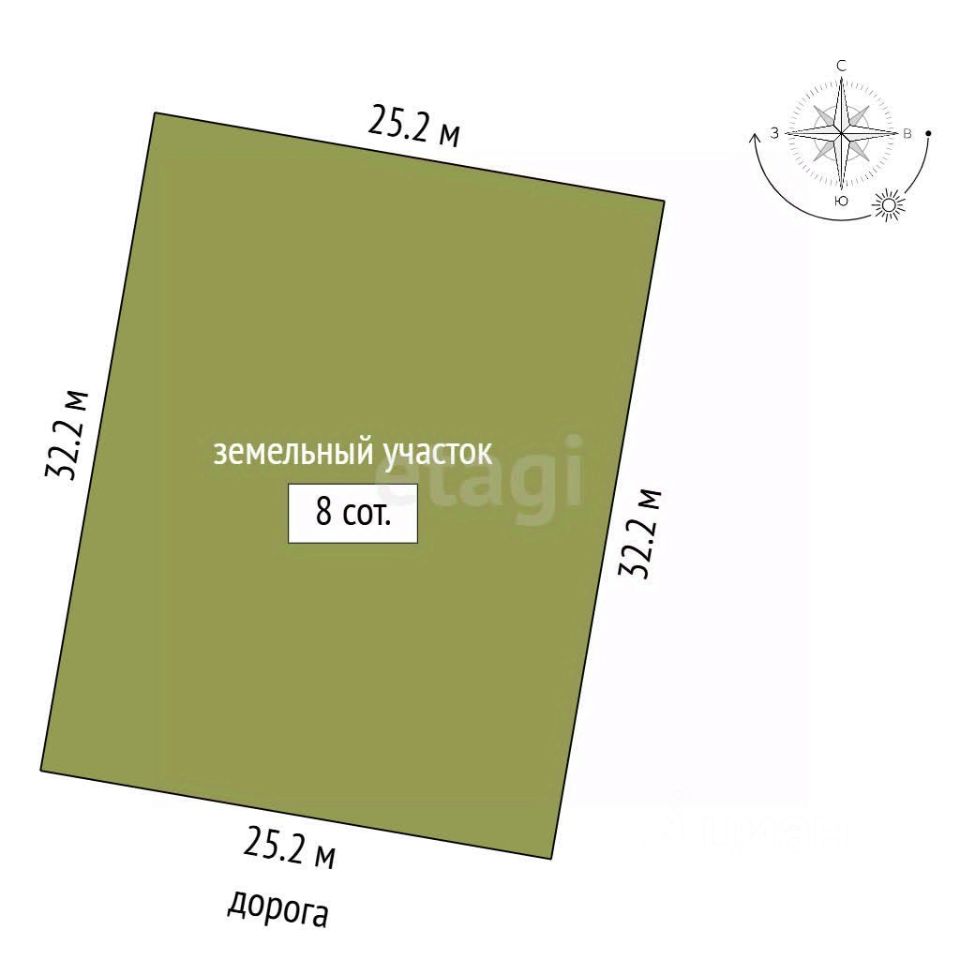 Участок имеет правильную прямоугольную форму, что упрощает планирование и эффективное использование всей территории.