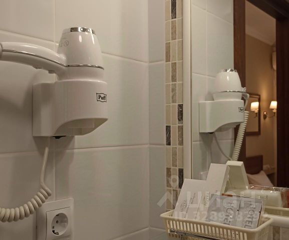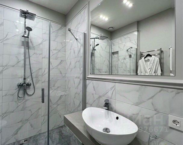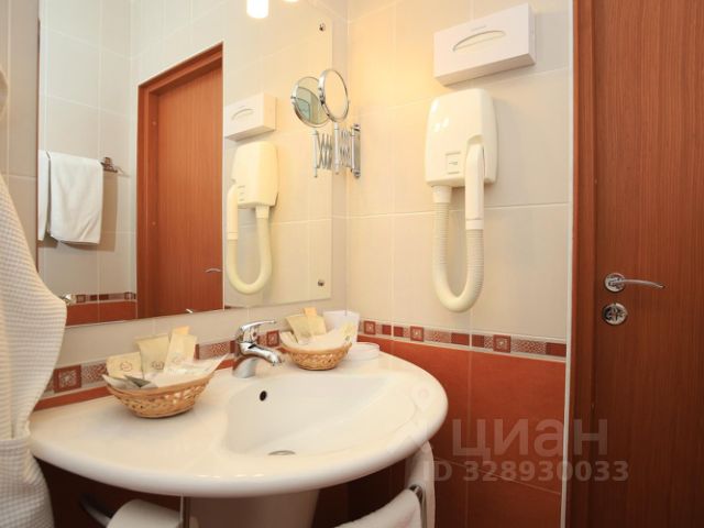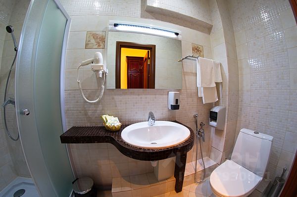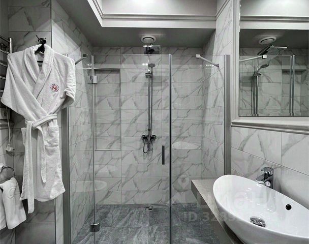 Ванная комната: душевая кабина, фен, комплект полотенец, халат, полный комплект гостиничной парфюмерии.