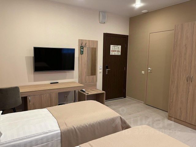 В номере, площадью 24 м², 2 кровати 90*200 см или 1 большая кровать 180*200 см, удобный рабочий стол, вместительный шкаф для одежды, кондиционер, холодильник, телевизор с функциями SMART-TV, интернет WI-Fi, телефон.