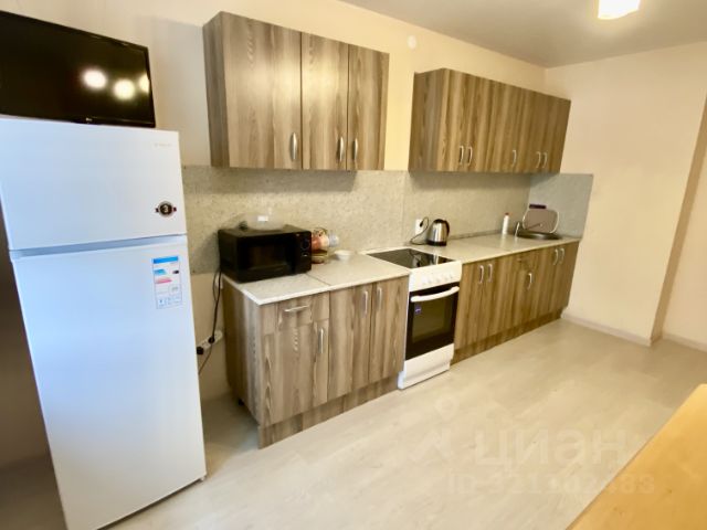 Сдаётся уютная студия площадью 30 кв. м на 5-м этаже 10-этажного кирпичного дома 2015 года постройки. Квартира с комфортной жилой площадью 25 кв. м, потолки высотой 2,5 метра. Идеальный вариант для одного человека или молодой пары. Окна выходят во двор, поэтому в квартире тихо и спокойно. В квартире выполнен косметический ремонт, все необходимое для комфортного проживания уже есть: мебель на кухне и в комнате, холодильник, телевизор и стиральная машина. Планировка студии позволяет удобно разместить все вещи. В санузле установлена ванна, что делает его комфортным для ежедневного использования. Дом в отличном состоянии, оснащен пассажирским лифтом. Автомобили можно парковать на наземной парковке рядом с домом. Инфраструктура района развита.